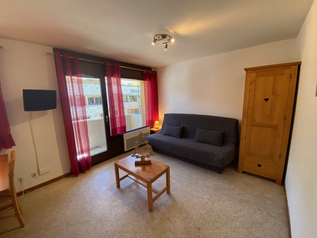 Séjour avec balcon, TV, canapé-lit 160 cm x 2 personnes.